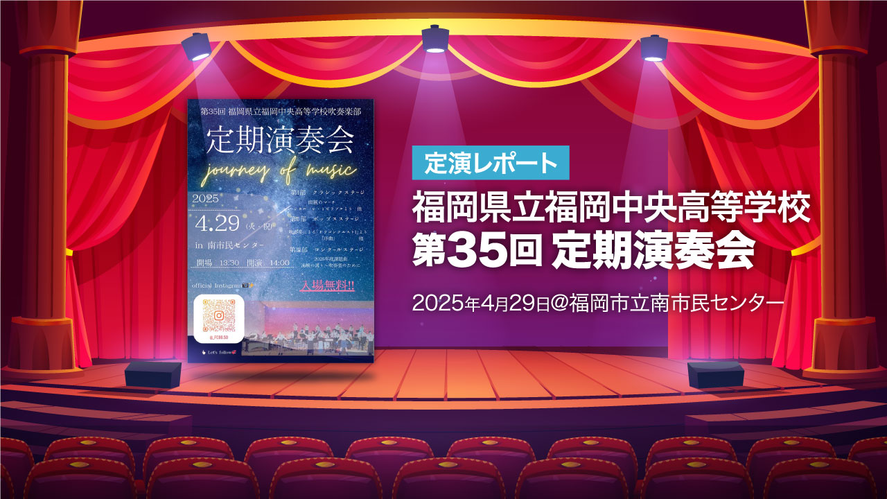 2025年4月29日(火祝)に行われた福岡県立福岡中央高等学校「第35回定期演奏会」の様子をレポートします。